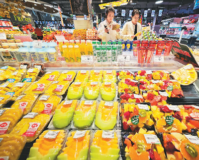 图为消费者在山东省烟台市一家超市购物。