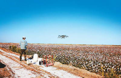 “脱叶剂能脱去叶子,保留枝干和棉花,采收时可避免绿叶混入影响棉花品质。这架M—22由我们和合作伙伴共同研发,一天能完成四五百亩棉田的喷洒作业。”朱锐告诉记者,“核桃、枣树、苹果、小麦、防风林等农林作物,都用上了植保无人机,农民的田间劳作轻松不少,收益更高,增产率达到10%以上,农户亩均成本降低30%以上。”